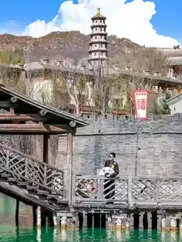 ✅Visit Mountain Top Church and Yuantong Pagoda for panoramic views of the town. Around 8 PM, you can watch the drone show, then head to Wangjing Street for the Great Wall Music Water Dance Show, followed by hot springs on the wall