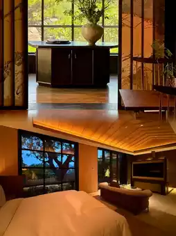 Public Areas: The public spaces feature many Japanese garden-style designs, with picturesque views at every turn and solid material choices. The lobby, the pavilion atop the tea room, the interior of the tea room, the meditation room, and the swimming pool are all excellent spots for photography. The play of light and shadow is mesmerizing, and the amenities are comprehensive, including a coffee bar, tea room, bar, and media room.