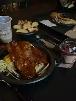 Three Broomsticks Restaurant: Grilled chicken and ribs platter + Peach Oolong Tea