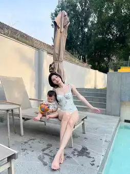 Our little one absolutely loved playing in the pool, laughing so hard their eyes squinted hhh.