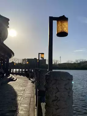 We chose to take a leisurely paddle boat to enjoy the view around the lake. The sunlight reflecting off the water surface and the sound of birds was very relaxing. If anyone wants to take pictures in an ancient Chinese style, there are many Ming-Qing Dynasty style buildings to walk around here. Or walk around the stone bridge, which is as cute as being in a scene from a period drama.