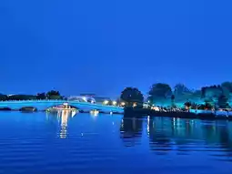 Glide along Liangma River at night for a dreamy cruise that blends city sparkle with waterfront calm. The 40–60 minute loop from Solana or Yansha Pier sails past 24 illuminated bridges, with highlights like the Haoyun Bridge’s technicolor, fiber‑optic light show reminiscent of Van Gogh’s Starry Night. Expect elegant music, glowing architecture, and the smooth rhythm of reflections dancing on the water—an enchanting urban escape after dark.