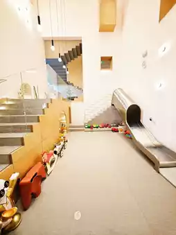 • Kids’ Play Area: Both indoor and outdoor play areas are spacious and well-equipped with slides, swings, and toys, resembling a mini amusement park. Kids can play to their heart’s content while parents relax.