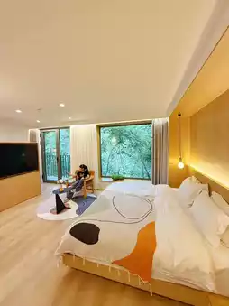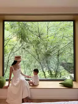 • A small sofa by the window is perfect for soaking up the sun during the day or gazing at the mountain views at night. Every snapshot captures a serene "life is beautiful" vibe.