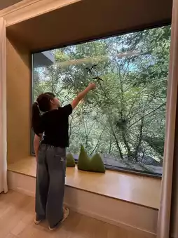 The moment you step into WanderHotel, it feels like entering a hidden paradise. Surrounded by lush green mountains and trees, the view from the windows includes the winding Great Wall and a babbling brook. The courtyard features a grassy lawn, a swimming pool, and a cloud swing, while the rooftop offers a scenic viewing terrace. In the evening, enjoy the mountain breeze and the view of rolling hills—it’s incredibly soothing. There’s also an adorable chubby cat in the yard. Initially mistaken for a pregnant female, it turns out to be a plump male cat with a hilariously reluctant expression 🤣.