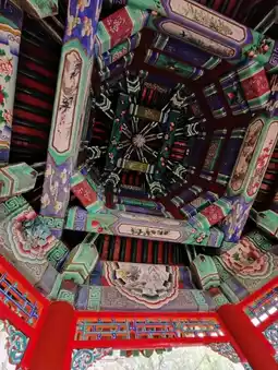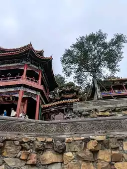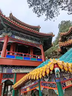 The "Painting Tour" (Huà Zhōng Yóu) is an exquisite pavilion within the Summer Palace, renowned for its distinctive architecture—crimson pillars, vibrant glazed tiles, and intricately carved beams adorned with painted designs. Its interior is equally resplendent. Ascending the pavilion rewards visitors with sweeping views of Kunming Lake's majestic scenery. In the distance, the Seventeen-Arch Bridge stretches like a rainbow across the water, while the shimmering lake and rolling hills create a panorama so breathtaking, one feels immersed in a living painting.