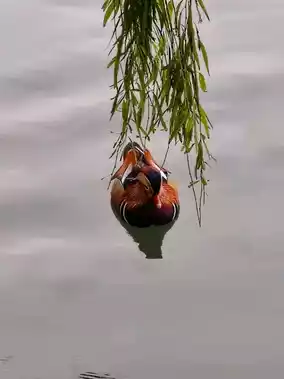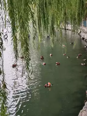 As the autumn breeze sweeps through, Beihai Park’s seasonal hues are not vibrant but understated and refined. Golden ginkgo leaves contrast with emerald-green willow branches, composing a serene tableau. On the lake, mandarin ducks—adorned in striking colors—glide leisurely or gather in small flocks, adding a lively touch to the park’s delicate autumn scenery.