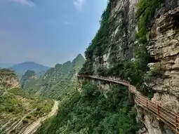 Qingyun Glass Walkway: Stretching 168 meters at an altitude of over 300 meters, this walkway hangs on a hundred-meter cliff with transparent glass underfoot, offering a panoramic view of the Juma River Canyon. The winding path evokes the poetic sentiment of "mountains and rivers seeming to end, only to reveal another village," combining the thrill of heights with the grandeur of the canyon.