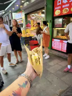 Our biking adventure was not just about the sights; it was also a culinary journey. Dom led us to some of the best street food vendors hidden within the hutongs, each stop offering a tantalizing taste of authentic Beijing cuisine.
