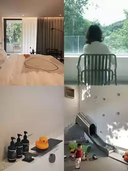 ▪️ Indoors: Hidden within the high-ceilinged space is a mini playground! A big slide winds down from above, a reading nook is stacked with picture books, there’s a toy car track, and a caterpillar tunnel… Rainy or windy days? No problem, the fun never stops.