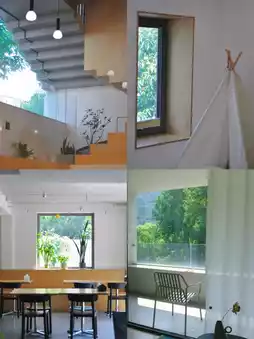 Upon arrival, you’re immediately struck by the sight of this three-story white standalone building. It’s not large, but it feels like a meticulously crafted gem, quietly nestled amidst the lush greenery of the valley. You can sense a Scarpa-esque aesthetic here, with clean lines playing games with light and shadow. The space is open yet filled with thoughtful details. It’s not about exaggerated grandeur but about making every inch count—refined and practical.