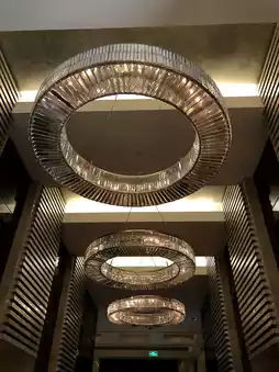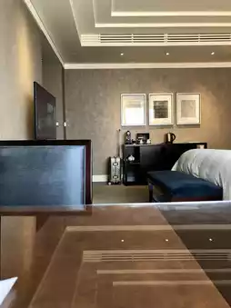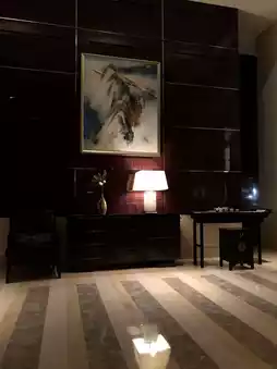 The 27-story landmark building was designed by HBA. The lobby replicates the Forbidden City's gold leaf dome and coiled dragon carpet, exuding imperial grandeur! Under the Czech crystal chandelier, 400 steel butterflies flutter up to 66 meters high, perfect for sci-fi style photoshoots📸. Guest rooms feature an ink-gray palette, with embroidered "Eight Views of Yanjing" above the bed and a smart lighting system that switches between work and sleep modes at the touch of a button—detail lovers will be thrilled.