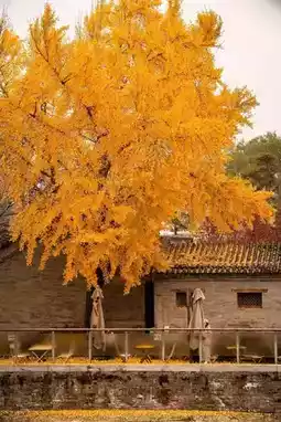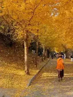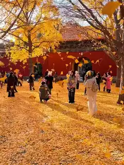 The combination of ancient architecture and ginkgo trees here is stunning. The autumn scenery is diverse and rich, featuring ginkgo trees on the large lawn, ginkgo-lined paths, and towering dawn redwoods and red maples.