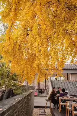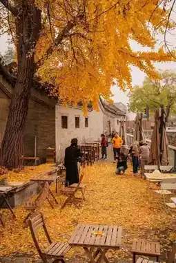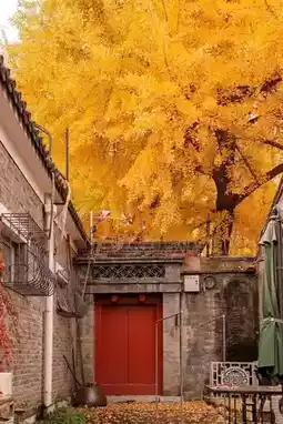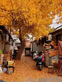 At the entrance of the hutong, there are white wax trees. Sunshine ☀ filters through the golden leaves, revealing the lively life inside the hutong.