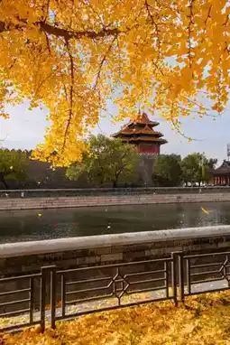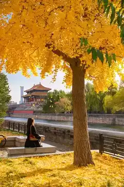 From Wanchun Pavilion, you can overlook the ancient buildings of the Forbidden City. The red tiles and golden roofs look especially charming framed by autumn leaves.