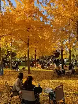 As soon as you enter the park, tall ginkgo trees greet you. Sitting on a bench under the maple trees, feeling the falling maple leaves 🍁 is so romantic.