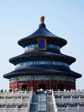Located in southern Beijing, the Temple of Heaven was the site where the emperors of the Ming and Qing dynasties offered sacrifices to heaven and prayed for a good harvest. It is a culmination of ancient Chinese architecture and cosmology. Upon entering the Temple of Heaven, one is struck by the interplay of blue brick and red walls and soaring eaves, and the air seems to still resonate with the rituals and music of past emperors.