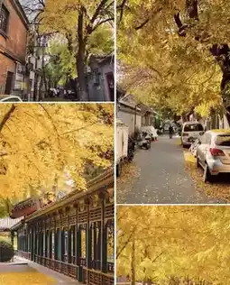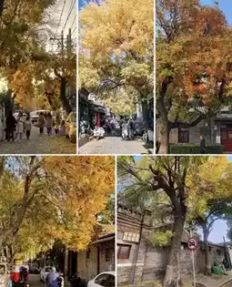 5. Beiluogu Lane - Shichahai: Yellow leaves of white wax trees flutter in Beiluogu Lane, pass through Lingdang Hutong to Shichahai, where the Yinding Bridge’s "Yinding Mountain View" is a limited autumn scenic spot of old Beijing.