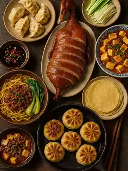 • Signature dishes:• Peking Duck: Crispy skin, tender meat, served with dumplings and sauce.