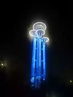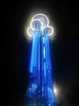 4⃣️ Sunset and Night Views: At sunset, the sky is covered in deep blue, and the city’s nightscape is enchanting. The Olympic Tower also features different themed light shows, such as sparkling ice and snow, Olympic rings, and the Tree of Life.