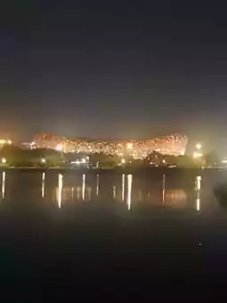 1⃣️ Best Photo Spot: The artificial river on the east side of the Bird’s Nest offers a perfect view of the lit Bird’s Nest and its reflection on the water, the “standard shot” of the Bird’s Nest.