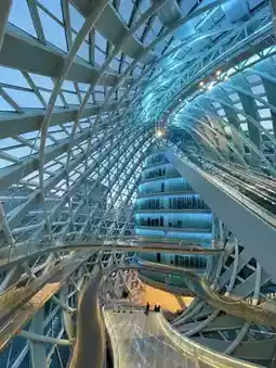• 🌀 Iconic oval “Mobius ring” architecture, designed by BIAD