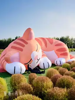 The check-in spot at the Hundred Vegetables Garden is too cute, with round ground cover grass + a giant sleeping cat installation, paired with a flock of flying white doves, full of healing vibes.