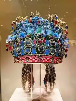 The Nine Dragons and Nine Phoenix Crown, valued at 1.3 billion yuan, is crafted from feathers and is incredibly detailed.