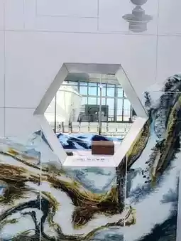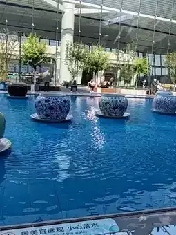 "Porcelain Garden" at Beijing Daxing International Airport is located in the southeastern concourses of the terminal. Inspired by the ancient Maritime Silk Road, it showcases the profound cultural heritage of China—the "Land of Porcelain." The garden centers around a water feature, adorned with exquisite ceramic jars. The walls artistically integrate blue-and-white porcelain patterns, three-dimensional ceramic forms, and murals depicting scenes from the Silk Road. Through modern design techniques, the space abstractly and expressively conveys the historical context of ceramic culture's dissemination, offering travelers a serene resting area imbued with Eastern charm.