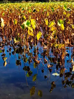 Golden ginkgo leaves in autumn 🍂 with stunning reflections on the lake