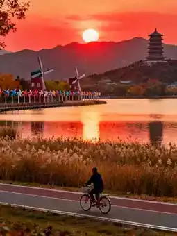 Yanqi Lake, 1.5 hours by car, is perfect for a light autumn getaway. Rent a bike and ride the 10 km lakeside path; windmills and reed beds sway in the autumn breeze. Rest at the viewing platform to watch flocks of wild geese skim the lake. The sunset paints the water golden-red, making every snapshot wallpaper-worthy.