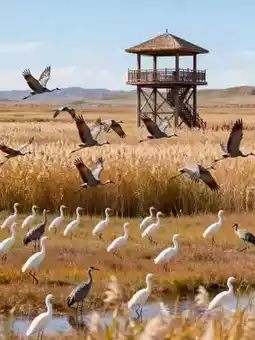 Daihai Wetland is a birdwatcher’s paradise; in autumn, migratory birds like egrets and grey cranes pass over the reeds, creating a vast, poetic scene. Must-try dishes include half a smoked chicken for 30 RMB, firm and flavorful, perfect as a gift; and 20 RMB per person for youmian wowo (oat noodles) with lamb sauce, chewy and filling.
