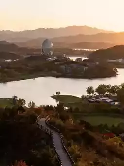 In the afternoon, hike the West Mountain trail for panoramic views of the lake, mountains, and the unique Sunrise Kempinski Hotel. Soft light acts like a natural filter for photos. For 40 RMB, take a boat to the island in the lake, where maple and ginkgo trees reflect autumn’s colors, a hidden paradise on the city’s edge.