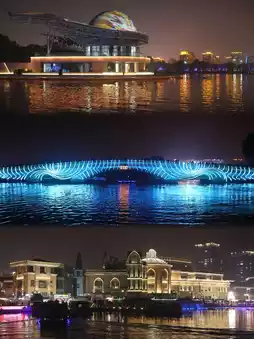 👣 Highly recommend the Liangma River cruise. The boat sails through a river interwoven with light and shadow, with buildings on both sides turning into a flowing painting. The lights reflect on the dark water, breaking into flickering stars. The most stunning moment is when the ethereal singing of the "Floating Diva" echoes over the river, with the giant water screen and light show of the Magic Cube blooming before your eyes; or watching the "Leap over Blue Lake" performers, like elves, stepping on beams of light as they fly overhead. At that moment, it feels like entering a dream about the future.