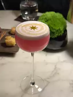 I must say, the cocktail I ordered was not only visually stunning but also incredibly delicious! It was rich and intense—just one glass might leave you feeling a bit tipsy. Besides the high-quality cocktails, the wine and other beverages are also meticulously selected. The staff's service is exceptional, living up to the standards of a luxury hotel. I’m absolutely in love 🖤. The vibes are great, and the music is fantastic 🎶. They play Italian Bossa Nova, Lounge, and Jazz, which are so soothing. Plus, they serve complimentary snacks in generous portions, including cold cuts and fried treats to pair with your drinks.