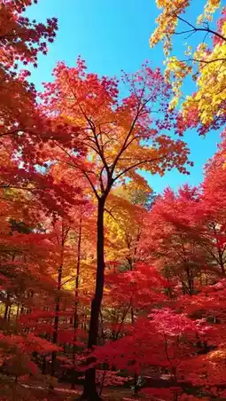 Maple leaves as red as fire | Ginkgo leaves as golden as gold | Pine and cypress still green