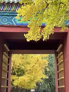❺ Forbidden City Corner Tower: Located on Jingshan Qianjie, the ginkgo trees at the northwest corner tower start turning yellow in late October; strolling here lets you feel the ancient capital’s autumn atmosphere.