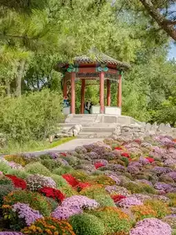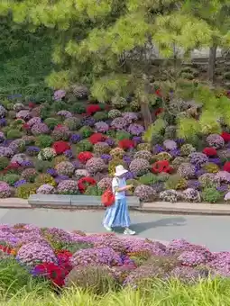 Take a leisurely stroll amidst over 8,000 chrysanthemums, bursting with vibrant colors of pink, purple, yellow, white, and red, while enjoying the cool, tranquil Beijing autumn air.