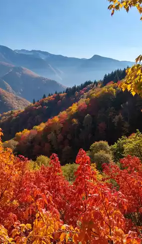 The Water Great Wall in autumn is stunningly colorful. The trees in the mountains seem to be painted by nature’s artistic hand; fiery red maple leaves sparkle like flames under the sunlight, golden ginkgo leaves gently sway like delicate fans, falling in the breeze like a golden rain curtain. The verdant pines and cypresses stand even taller amidst the red and yellow autumn leaves, adding a touch of tranquility to the autumn scenery.