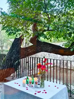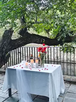 When the mountain stream’s flow sets the rhythm for your heartbeat, and the shadows cast by old tree branches gently wrap around a table full of tenderness—this is the "Proposal Whisper" hidden for you in a valley on the outskirts of Beijing.