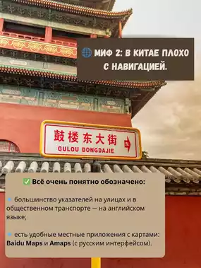 🔹 There are convenient local map apps: Baidu Maps and Amaps (with a Russian interface). These services will help you plan your route, find interesting places, and calculate travel time.