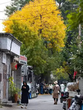 ➡️ Houyuan’en Temple Hutong: The white ash trees near Mao Dun’s former residence and several at the west entrance of the hutong have turned yellow