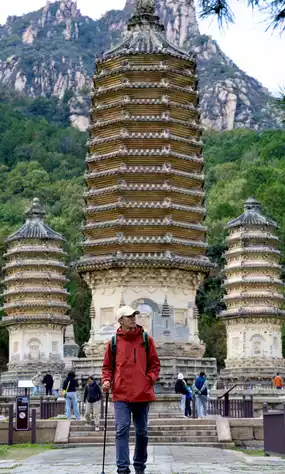 Trail on the left side of the pagoda forest square → stone steps climb → middle peak viewing platform,