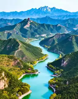 - Dishuihu (Dripping Water Pot): Named after a slender 30-meter-high waterfall that flows from a cliff opening, resembling water dripping from a pot. The lake water is emerald green like jade. A one-hour lakeside walk leads to the mountain top with panoramic views. The autumn scenery and reflections have earned it the nickname "Little Jiuzhaigou of Beijing suburbs." Admission is 25 RMB, free for children under 1.3 meters, and pets are allowed.
