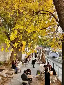 Sipping coffee under the trees, the autumn breeze blows through the branches and the leaves sway... it's like the song "Autumn March" is playing in your ears...