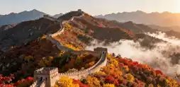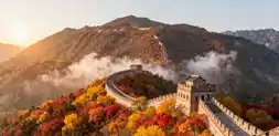 The Badaling Great Wall in autumn is like a magnificent landscape painting. The Great Wall winds through mountains adorned with golden, orange, and fiery red leaves, creating a picturesque scene where ancient bricks meet vibrant foliage. On crisp autumn days, climbing the Badaling Great Wall offers not only a sense of historical grandeur but also the enchanting beauty of nature, leaving visitors refreshed and reluctant to leave.