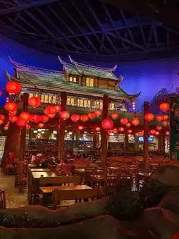 Refueling tip: For lunch or dinner, swing by any of the themed indoor restaurants – try one dressed up with glowing red lanterns at night; it’s cozy, atmospheric, and great for food snaps. Expect Chinese classics, as well as western bites, so pick your flavor!
