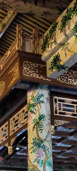 The central architectural complex, consisting of the main gate, main hall, rear hall, and east and west side halls, forms the core of Prince Gong Mansion. The main hall, modeled after the imperial palace's Golden Throne Hall, is a grand seven-bay structure with a hip-and-gable roof, serving as the center for ceremonial activities.