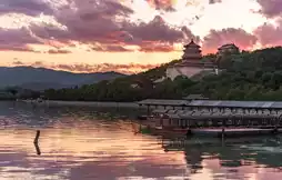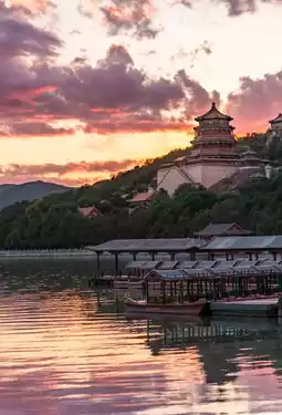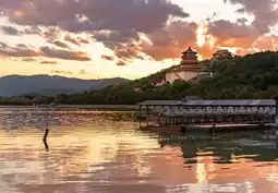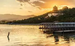 As the sun gradually set, the clouds above the Tower of Buddhist Incense kept changing shapes and colors. The golden-edged clouds shifted from orange to purple, and then to red. The western sky was reflected on the surface of Kunming Lake, creating a shimmering, romantic painting.