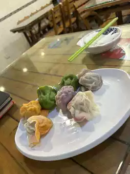 Absolute highlight: bouldering at 6pm (check local climbing gyms on trip.com for bookings). Met 2x2 new friends and got creative with our English-Chinese fusion convo ("nice, let’s go, ni ke yi") — everyone was so chill! Tried some Insta-worthy natural colored dumplings, giving them a solid 8/10.🙌